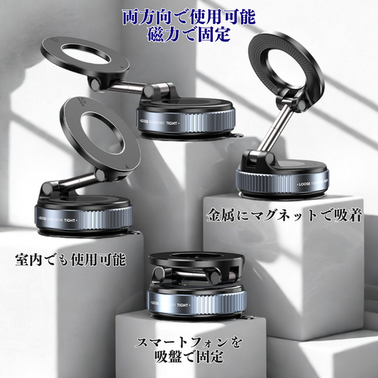 SanJapan 2025年新型マグセーフ磁気携帯電話ホルダー - 真空吸盤式、強力な磁力吸着、折りたたみ式カー携帯電話ホルダー
